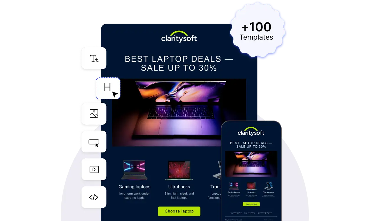 Whether you’re a beginner or a seasoned marketer, Claritysoft’s email designer makes it simple to create stunning, high-converting emails without any coding experience.